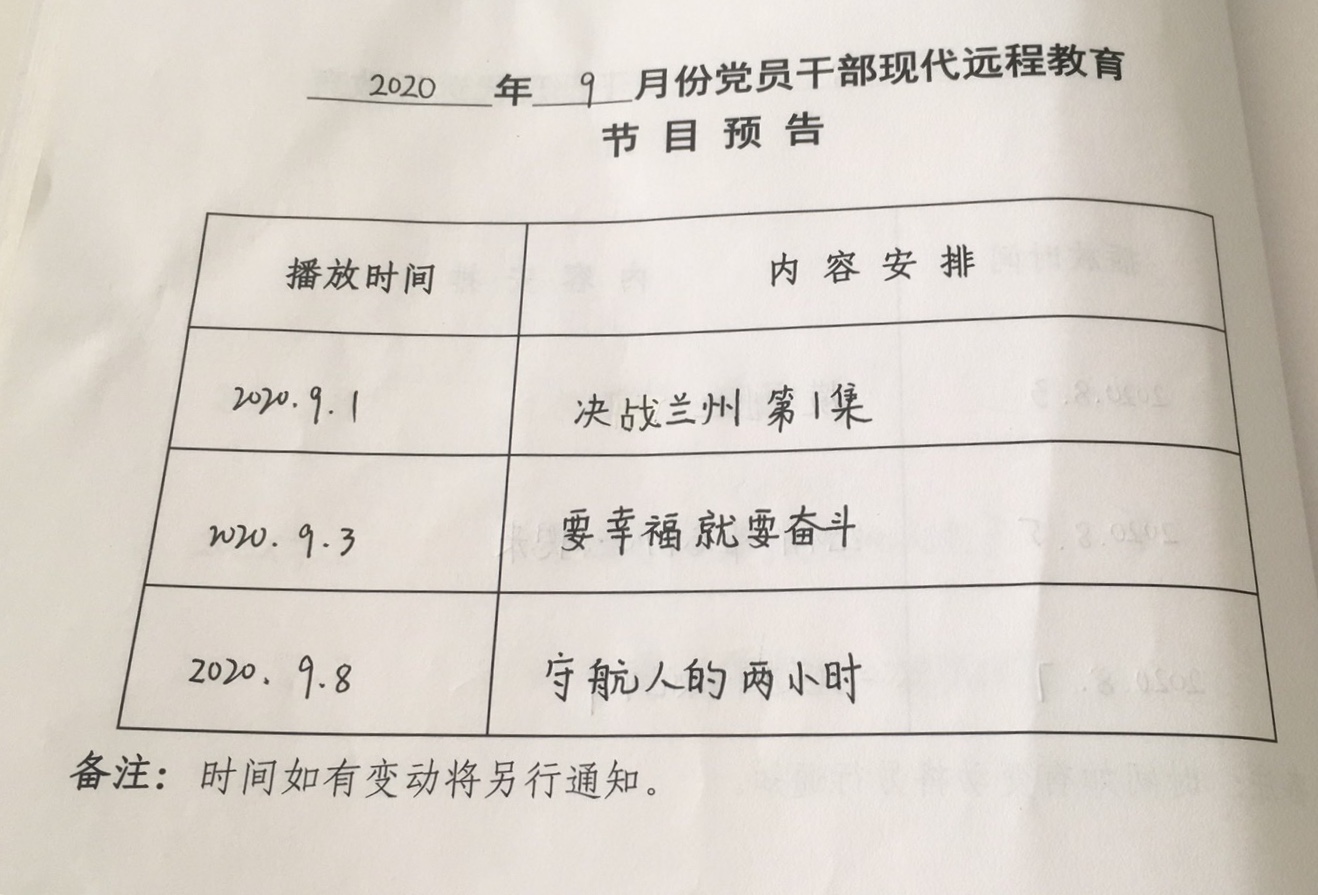 天王村9月遠(yuǎn)程教育播放計(jì)劃