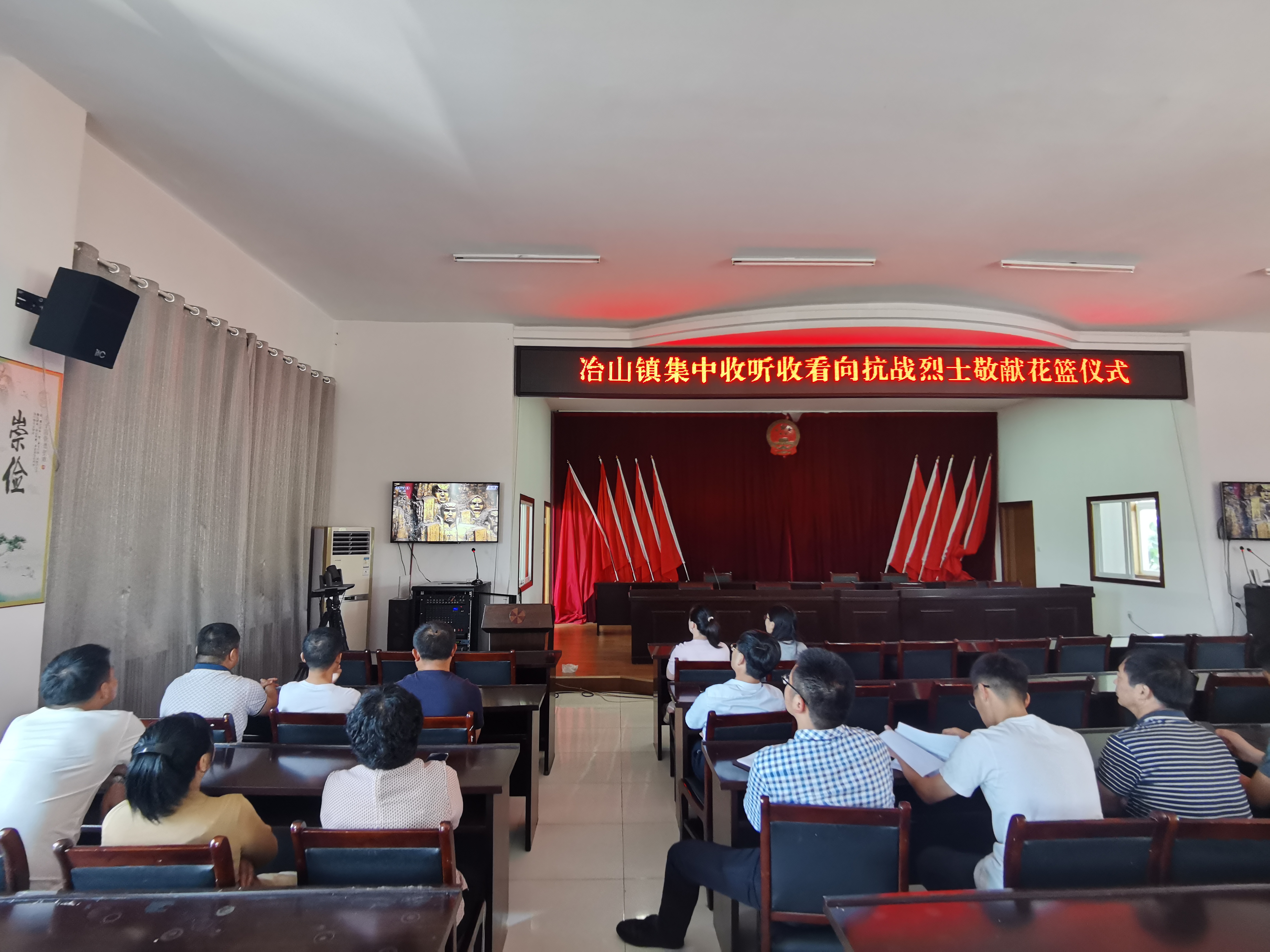 9月3日是中國人民抗日戰爭暨世界反法西斯戰爭勝利75周年紀念日。今天上午,中共中央總書記、國家主席、中央軍委主席習近平等黨和國家領導人同首都各界代表一起,在中國人民抗日戰爭紀念館向抗戰烈士敬獻花籃。冶山鎮組織全體機關工作人員在鎮二樓會議室集中收聽收看向抗戰烈士敬獻花籃儀式實況,深切緬懷為民族獨立、人民解放、國家富強、人民幸福英勇獻身的革命先烈,追思革命先烈的豐功偉績。