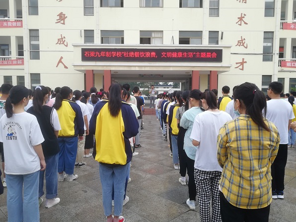 “浪費可恥,節約光榮”。鏗鏘有力的口號響徹校園上空,這是9月7日上午,石梁九年制學校開展“杜絕餐飲浪費、健康美好生活”主題教育活動時,同學們發出的錚錚誓言。