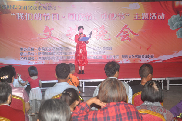 9月26日晚,在新街鎮綜合文化服務中心文體廣場前,人頭攢動,新街鎮在這里舉辦新時代文明實踐系列活動、“我們的節日·國慶節、中秋節 ”主題活動文藝晚會。