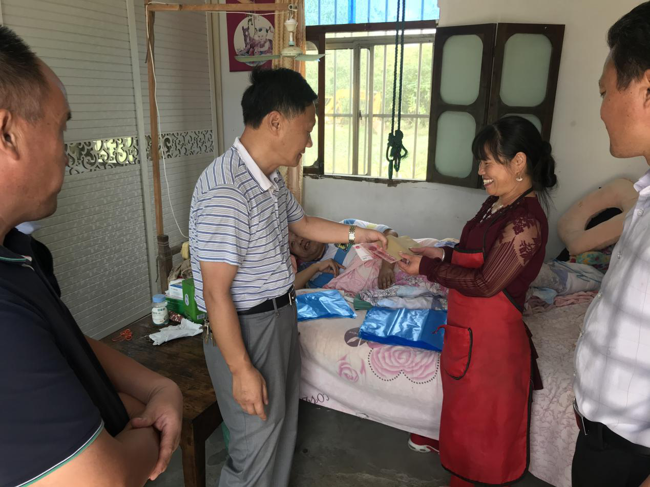 來到黃橋村村民蔣應仙家中,慰問組了解到她丈夫因殘疾常年臥床不起,兒子在外地打工,她本人也有殘疾,腿腳不便,目前在家附近的玩具廠一邊打零工,一邊操持家庭,生活十分困難。負責鎮統戰工作的周委員對她幾十年如一日照顧患病丈夫表示了由衷的敬佩,叮囑她有困難可以向黨和政府反映。蔣應仙對鎮黨委、政府的關心表示了感謝。
