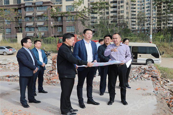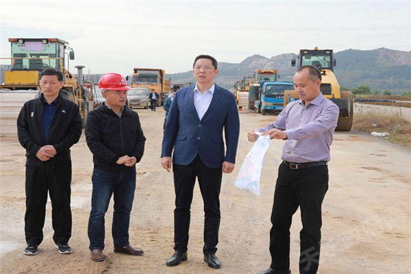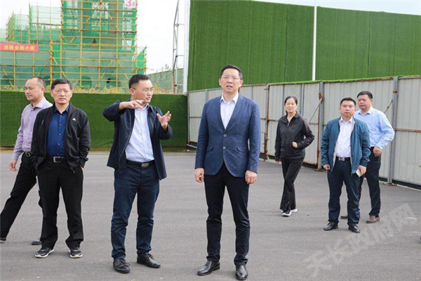 鄧繼敢一行先后來到金牛湖新區(qū)生態(tài)路網(wǎng)基礎(chǔ)設(shè)施建設(shè)現(xiàn)場、泛美天長航空大學城項目現(xiàn)場、恒大童世界等地,詳細查看項目建設(shè)進度,并現(xiàn)場協(xié)調(diào)解決項目推進過程中存在的困難和難題。