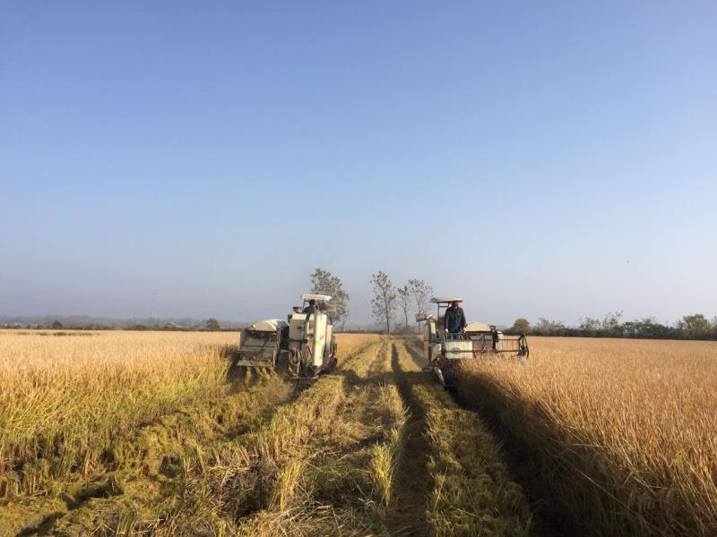 2020年10月9日,平安社區兩委班子督促種植大戶收割稻谷, 金黃色的稻谷讓農民享受自己的勞動成果。