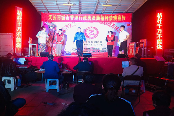 天長市行政執(zhí)法局是廣陵街道長亭村秸稈禁燒聯(lián)系單位,該單位高度重視這項(xiàng)工作,定期到長亭村進(jìn)行“巡察”,還利用無人機(jī)參與秸稈禁燒巡查,真正做到“天空地面”無死角、全覆蓋的立體式巡查。近日,又同市文化和旅游局精心策劃編制了揚(yáng)劇小品《秸稈千萬不能燒》,該小品內(nèi)容充實(shí),色彩鮮艷,個(gè)性獨(dú)特,充滿了濃郁的鄉(xiāng)土氣息。演員扣人心弦的唱腔和感人至深的表演,讓廣大的戲迷朋友們著實(shí)過了一把戲癮,為長亭村群眾帶來了一場視覺與聽覺的盛宴,同時(shí)讓秸稈禁燒宣傳融入廣大村民的現(xiàn)實(shí)生活中,豐富了群眾的文化生活。