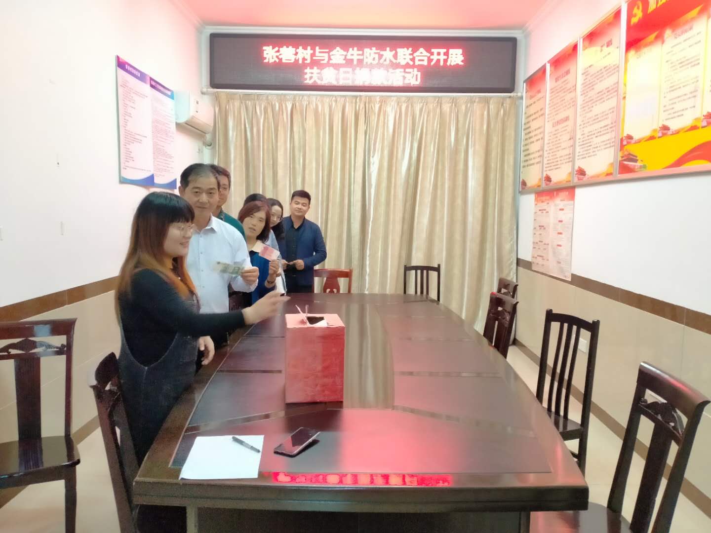 在“扶貧日”捐款儀式上,領(lǐng)導(dǎo)帶頭,村干部和金牛防水工作人員積極參與。此次活動(dòng)堅(jiān)持自愿、鼓勵(lì)奉獻(xiàn)的原則,村部上下積極響應(yīng)號(hào)召,充分發(fā)揚(yáng)眾人拾柴火焰高的精神。整個(gè)捐款活動(dòng)氣氛熱烈,井然有序,紛紛伸出友愛(ài)援助之手,慷慨解囊,奉獻(xiàn)出自己的一份愛(ài)心,希望通過(guò)大家的熱情參與,踴躍捐款,讓扶貧對(duì)象感受到社會(huì)主義大家庭的溫暖,感受到社會(huì)各界的關(guān)心,感受到生活的希望,增添他們走出困境的信心和動(dòng)力。