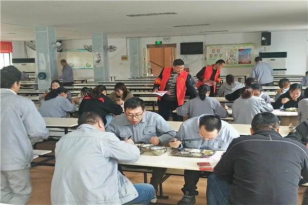 村企聯合黨組織黨員志愿者們利用雙豐公司職工午餐時間,向職工發放《致廣大人民群眾的一封信》,以及防邪教、禁毒、掃黑除惡等宣傳手冊,隨后與企業職工開展談心談話活動,充分詢問企業安全生產情況,得知砂光車間日常生產過程中會產生大量木質砂光粉塵,部分企業職工防護意識不強,操作過程中忘記佩戴防塵口罩,嚴重影響了自身的生命健康。黨員志愿者們將職工意見匯總上報給公司,企業負責人要求在車間貼上“佩戴口罩”標識,并安排專人負責,砂光車間的職工必須佩戴防塵口罩后才能進入工作。