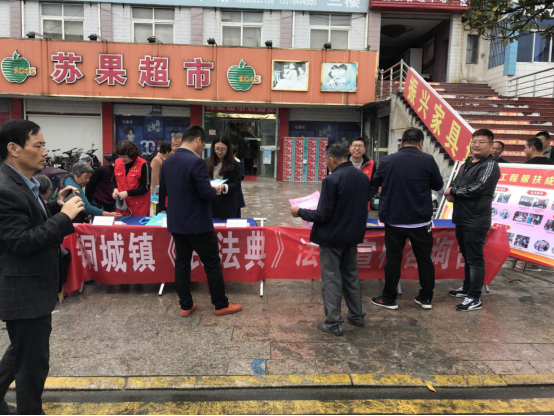 活動現(xiàn)場,集中展現(xiàn)了我鎮(zhèn)一年來精準(zhǔn)扶貧的主要做法和成果。各單位也結(jié)合所承擔(dān)的脫貧攻堅(jiān)任務(wù),向群眾發(fā)放相關(guān)宣傳資料,為廣大群眾普及扶貧開發(fā)政策,現(xiàn)場為群眾答疑解惑,進(jìn)一步擴(kuò)大“扶貧日”社會影響。本次活動中,銅城鎮(zhèn)司法所組織工作人員設(shè)立《民法典》宣傳咨詢臺,向過往群眾解答有關(guān)問題。通過發(fā)放宣傳冊、宣傳物資、提供咨詢等形式,深入宣傳民法典頒布的重大意義。對于群眾提出的何為婚姻冷靜期,哪些債務(wù)屬于夫妻的共同債務(wù),上下班途中摔傷是否屬于工傷等問題,都由司法所工作人員一一進(jìn)行解答,提供法律幫助。現(xiàn)場共解答群眾法律咨詢20余人次,發(fā)放普法宣傳資料100余份。