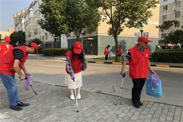 天長市千秋街道園林社區聯合黨委在職黨員深入同心北苑小區網格保清潔。
