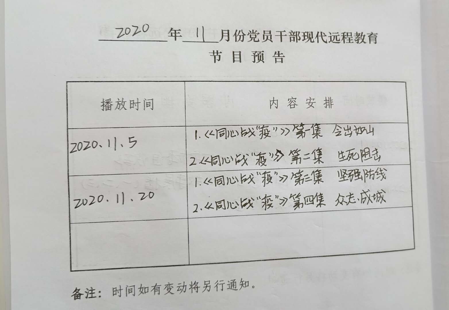 余莊村2020年11月遠程教育播放計劃如上圖所示