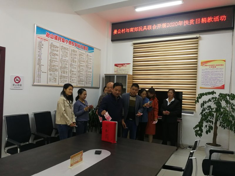 在全國第七個扶貧日到來之際,晏公村同南郊玩具聯合開展扶貧日捐款活動,大家積極捐款,為扶貧工作獻出綿薄之力。
