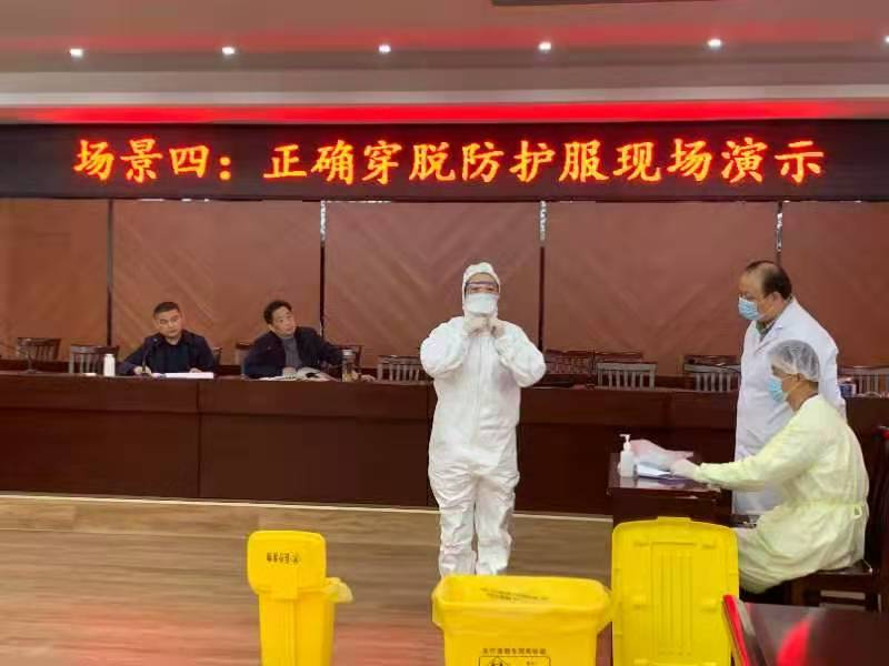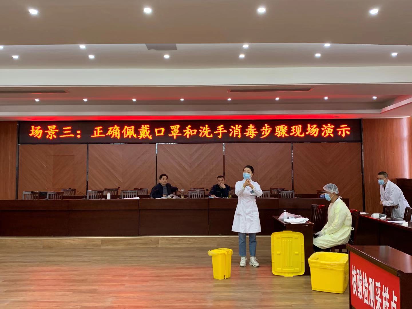 本次應急演練主要模擬中高風險地區返鄉人員的病例發現、境外人員來企防控措施、核酸檢測采樣及正確佩戴口罩、洗手消毒順序、防護隔離服穿脫5個場景展開演練。