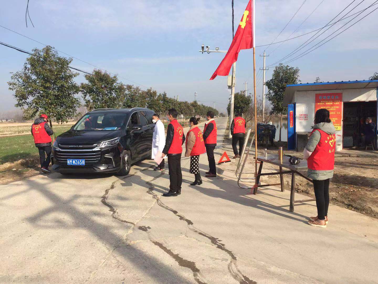 抗擊疫情,人人有責,2月10日,陸營村開展疫情防控宣傳活動。陸營村位于城鄉交界處,南面通往鄭集鎮,西面通往新街鎮,過往車輛較多,為了不疏漏一個行人,陸營村在村主要道路岔口設立卡點,村里黨員志愿者和村醫輪班對過往車輛人員進行測量體溫,查看通行證,并勸返等工作。