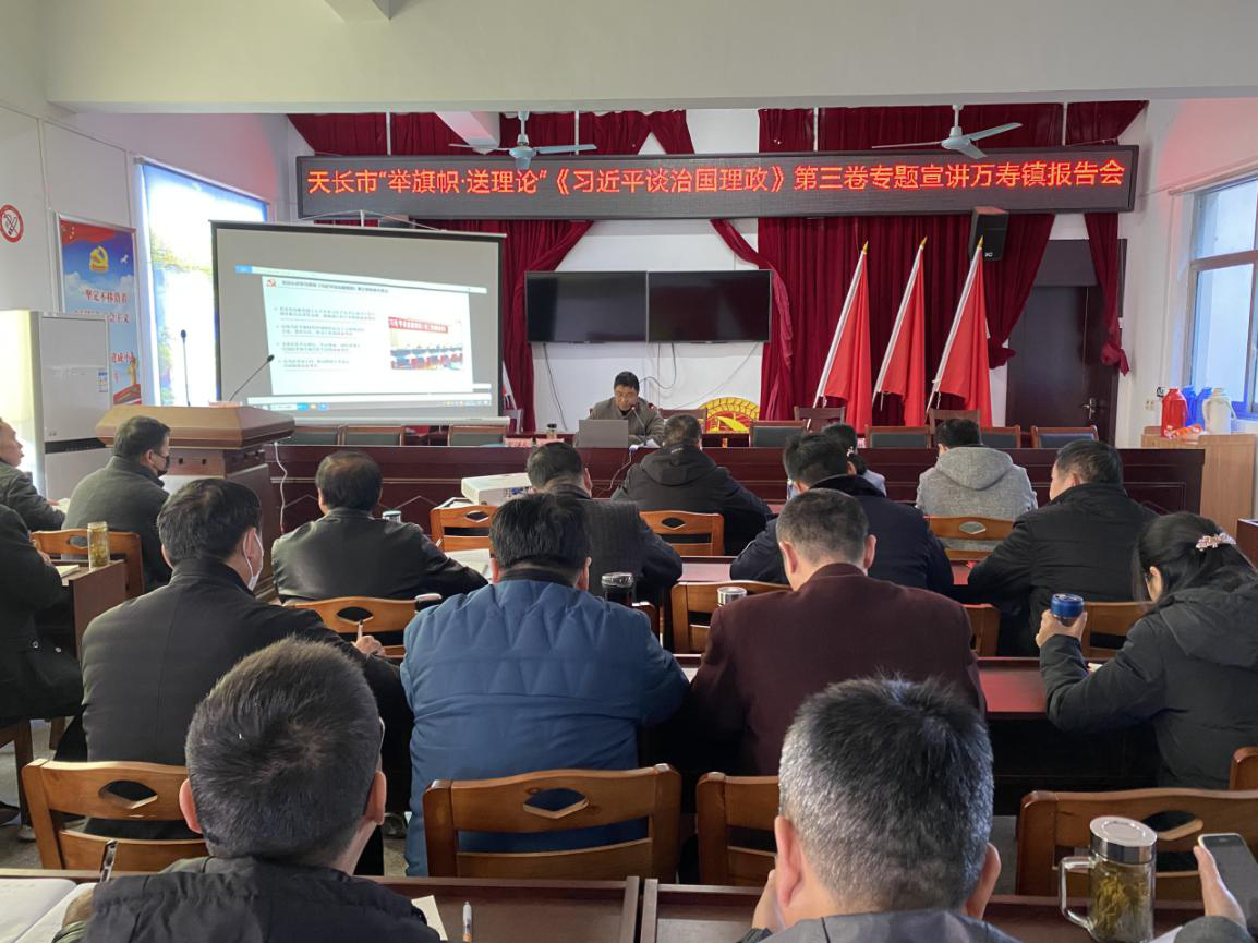 12月1日,天長(zhǎng)市“舉旗幟、送理論”宣講團(tuán)走進(jìn)萬(wàn)壽鎮(zhèn)開(kāi)展專題宣講,市宣講團(tuán)以《習(xí)近平談治國(guó)理政》第三卷與習(xí)近平總書記考察安徽重要講話精神為主題展開(kāi)宣講,萬(wàn)壽鎮(zhèn)黨員干部共140余人聆聽(tīng)宣講。