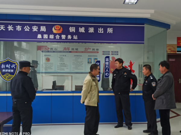 2020年12月9日,滁州市公安局領導來銅城鎮桑園村,檢查楓橋式派出所創建工作,銅城鎮派出所胡義所長等民警陪同。銅城鎮派出所以“矛盾不上交、平安不出事、服務不缺位”為目標,著力打造“楓橋式派出所”,在派出所積極推動下,并在桑園村設立桑園綜合警務站。