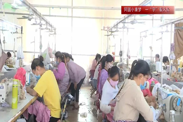 在蕭縣楊樓鎮誠榮玩具扶貧工廠內,60多臺縫紉機依次排開,機聲隆隆,80多名工人正在緊張而嫻熟地操作機臺加工絨毛玩具。生產毛絨玩具勞動強度小,勞動力需求量大,為周邊閑置勞動力提供了“量身定做”的就業渠道。鞏樓村建檔立卡貧困戶王杰和妻子在村里的扶貧車間上班已有4年,是車間生產的“臺柱子”,他們于2017年2月從外地返鄉進入扶貧車間工作。王杰說:“以前我們夫妻兩個在廣州打工,工作勤苦,除去吃穿用度也余不了錢,一年也剩不了幾個錢,現在在家門口的扶貧車間上班,夫妻倆一年就能掙到六七萬元,而且老人、孩子都能照顧好,地里的莊稼也不耽誤。”