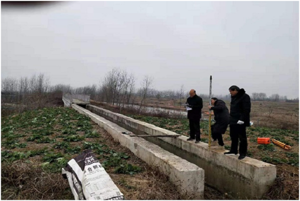 12月18日上午,張鋪鎮移民辦主任鄭訓山、水利站長吉耀東、技術員陸兆明一行三人到魏橋村胡橋電站頭,對胡橋電站出水渠進行了前期測量,掌握第一手資料,為后面襯砌提供具體方案,通過近一天的認真測量,測出渠道襯砌全長1250米,底寬1米,上口寬1.6米,高1米,大小涵管涵閘配套12處。