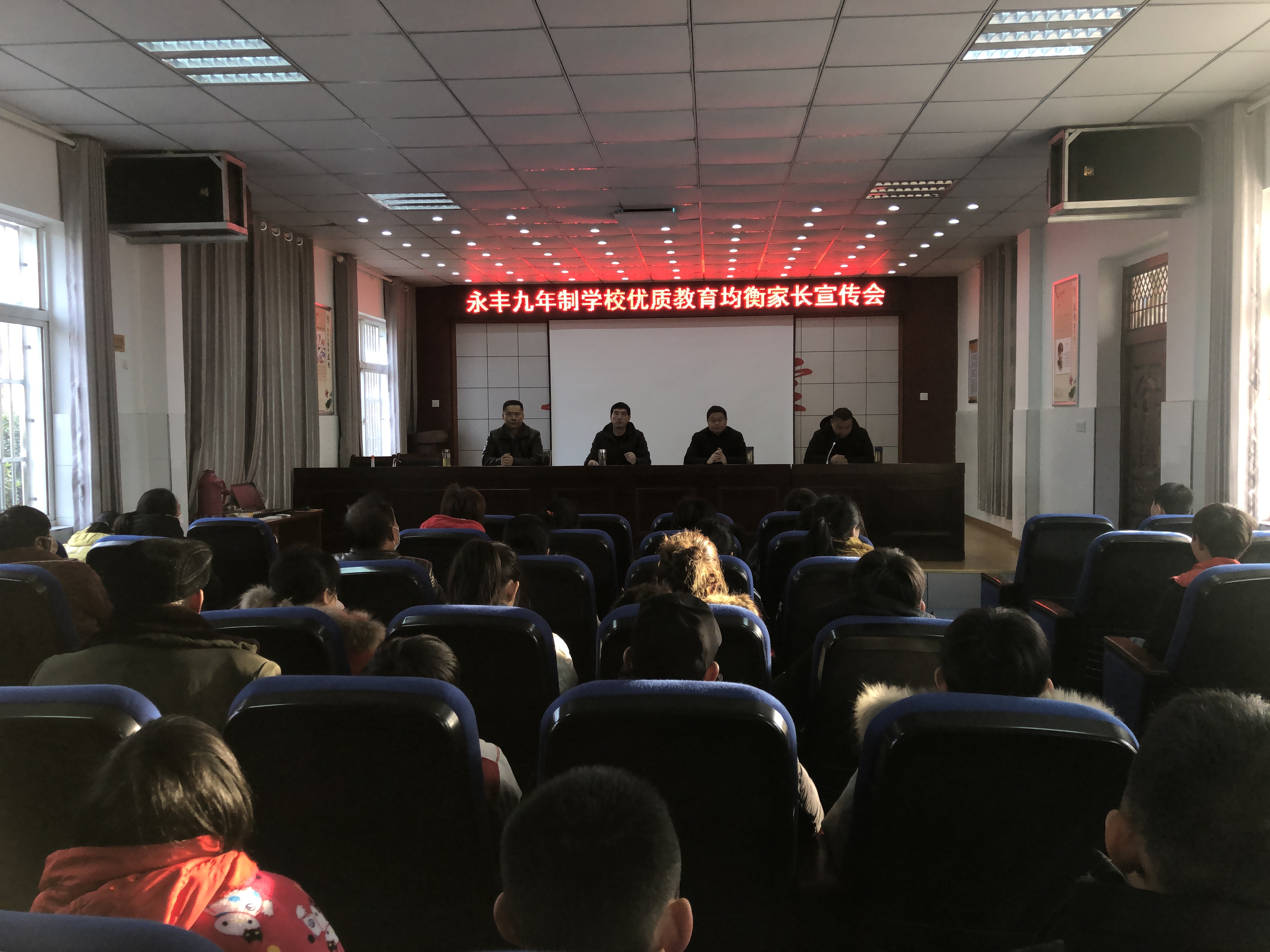 為了讓家長進(jìn)一步了解義務(wù)教育優(yōu)質(zhì)均衡發(fā)展的相關(guān)內(nèi)容,提高廣大家長對學(xué)校建設(shè)發(fā)展的認(rèn)識,12月14日上午,永豐九年制學(xué)校召開義務(wù)教育優(yōu)質(zhì)均衡家長宣傳會,校長汪桂玉主持會議。