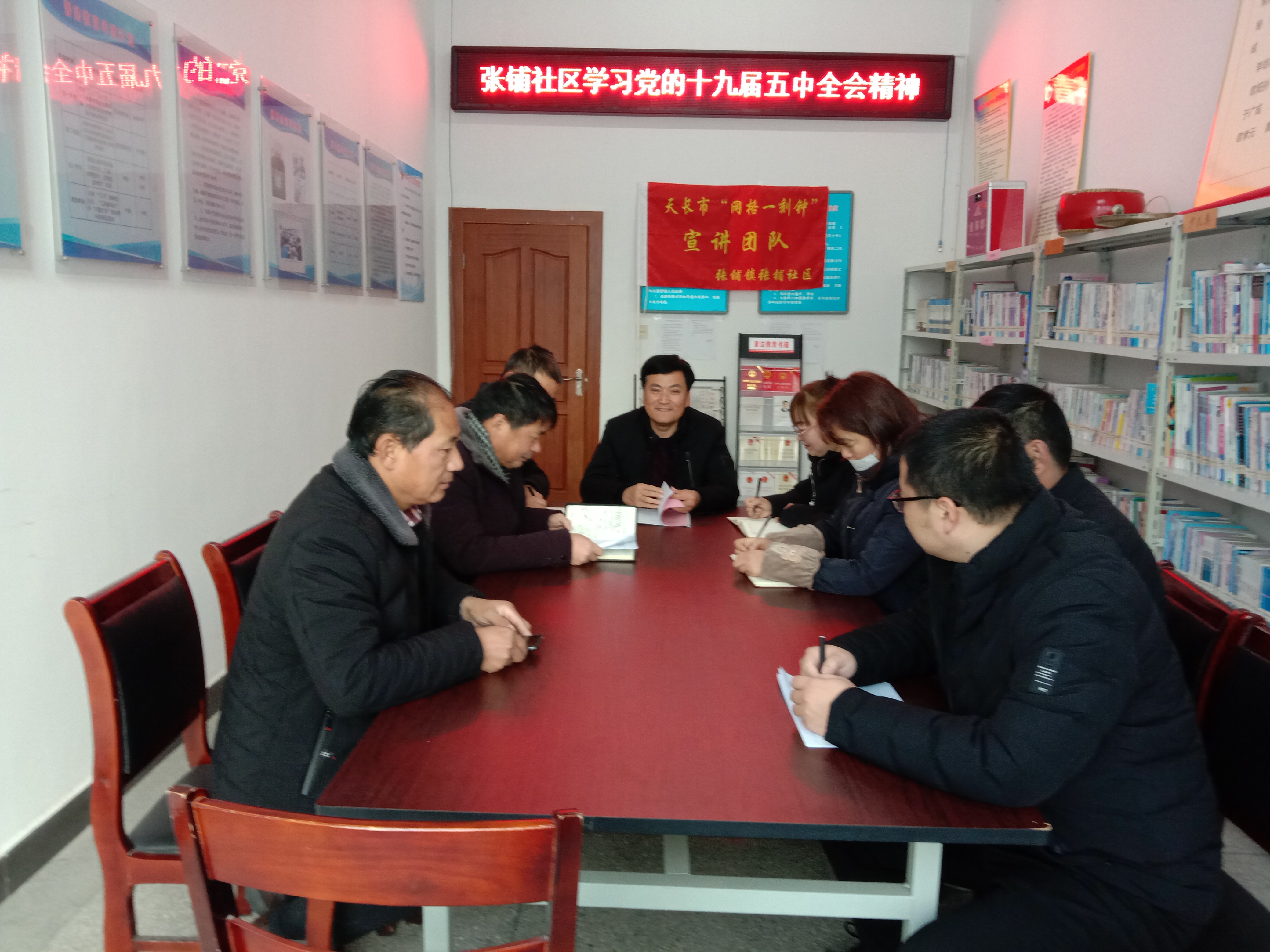 12月24日,張鋪社區組織包村鎮干和社區黨員干部一起在社區會議室共同學習黨的十九屆五中全會精神。社區黨員干部表示,全會對改善人民生活品質提出了重要要求,社區將全面貫徹落實會議精神,積極圍繞社區建設、志愿服務、養老服務等方面提升服務能力,爭取把社區建設成讓居民更加滿意的社區。