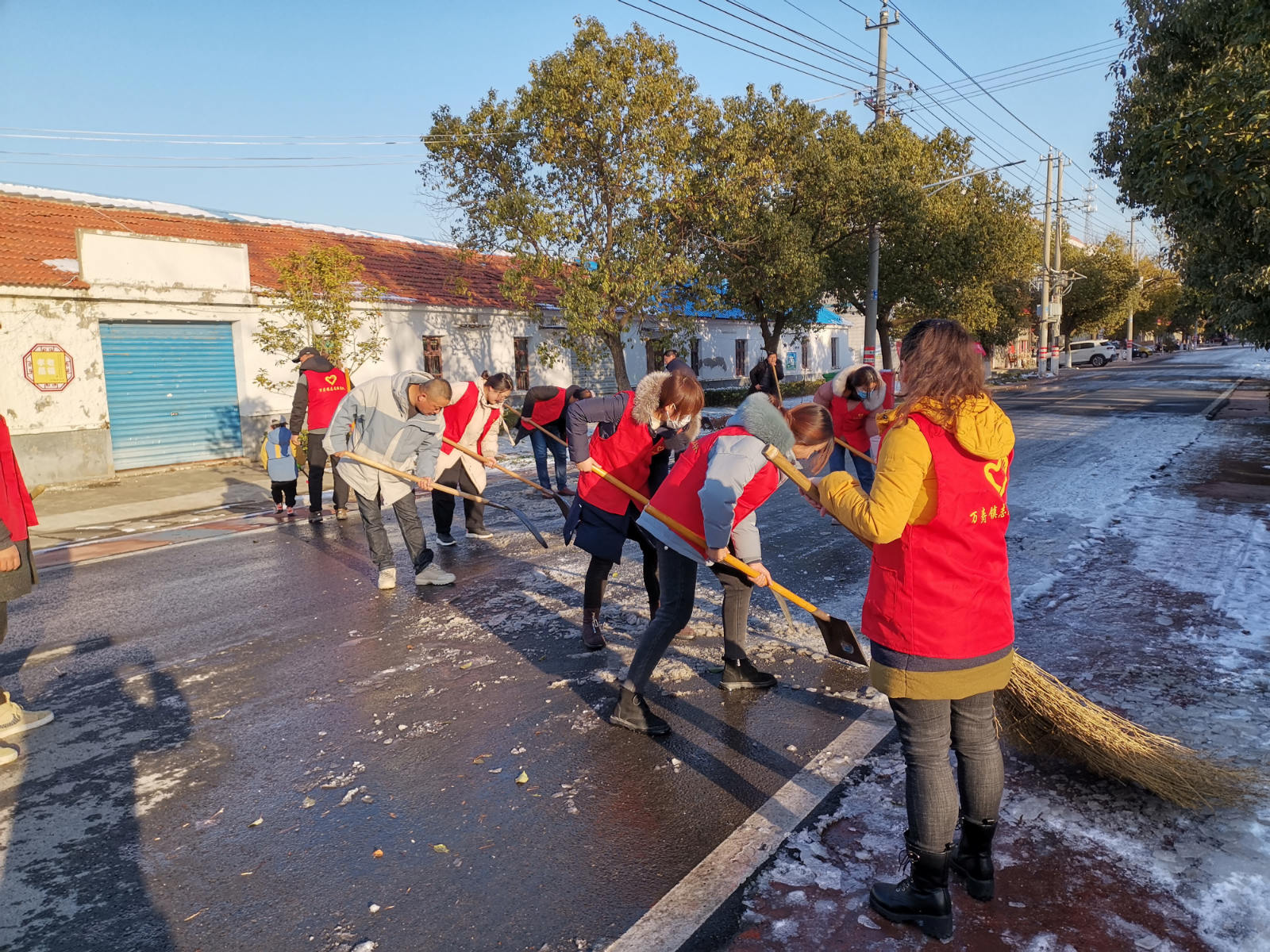 臨近元旦小長假,為了讓大家在元旦假期能夠安全出行,享受節假日歡樂,2020年12月31日下午,萬壽鎮人民政府組織單位員工志愿上路鏟雪。志愿者們身穿紅馬甲,扛著大鐵鏟,拿著大掃把,沿著政府門口前的萬福路和興旺路,奮力鏟冰掃雪,一時間乒乒梆梆的聲音不絕于耳。因為雨雪交加,未融化的雪都成了厚厚的冰層,不僅滑而且硬,根本鏟不動,志愿者們就用鏟尖一點點砸,再一點點鏟,鏟出的碎末再拿大掃把掃到路兩邊的綠化帶里,就這樣有的砸冰,有的鏟雪,有的掃雪,志愿者們配合默契,埋頭苦干,步步推進,終于成功清理出一條條干凈的道路。