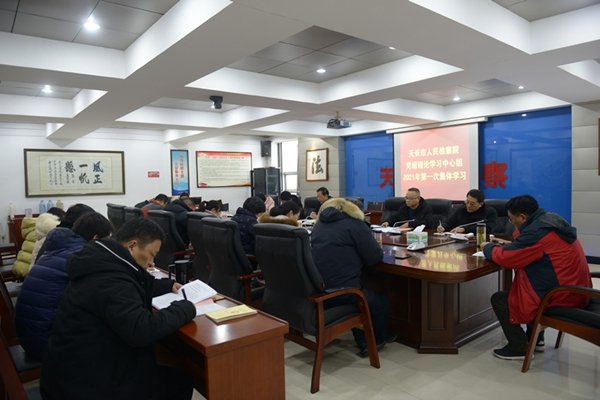 1月21日下午,天長市檢察院組織召開2021年第一次黨組中心組集體學習會議。院黨組書記、檢察長桑勝章主持會議,院領導、科級干部、各部門正副職參加會議。