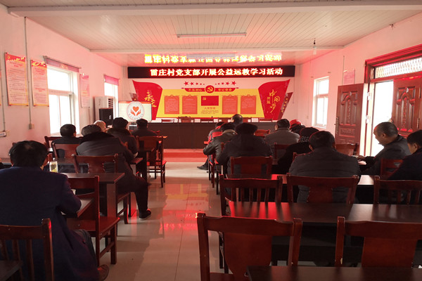 1月15日,為進一步調動我村黨員參與公益的積極性,發揮好黨建引領作用,雷莊村黨支部利用遠程教育終端開展黨員學習教育,播放了公益廣告《有困難找黨員》和《雷莊村公益協會宣傳片》。