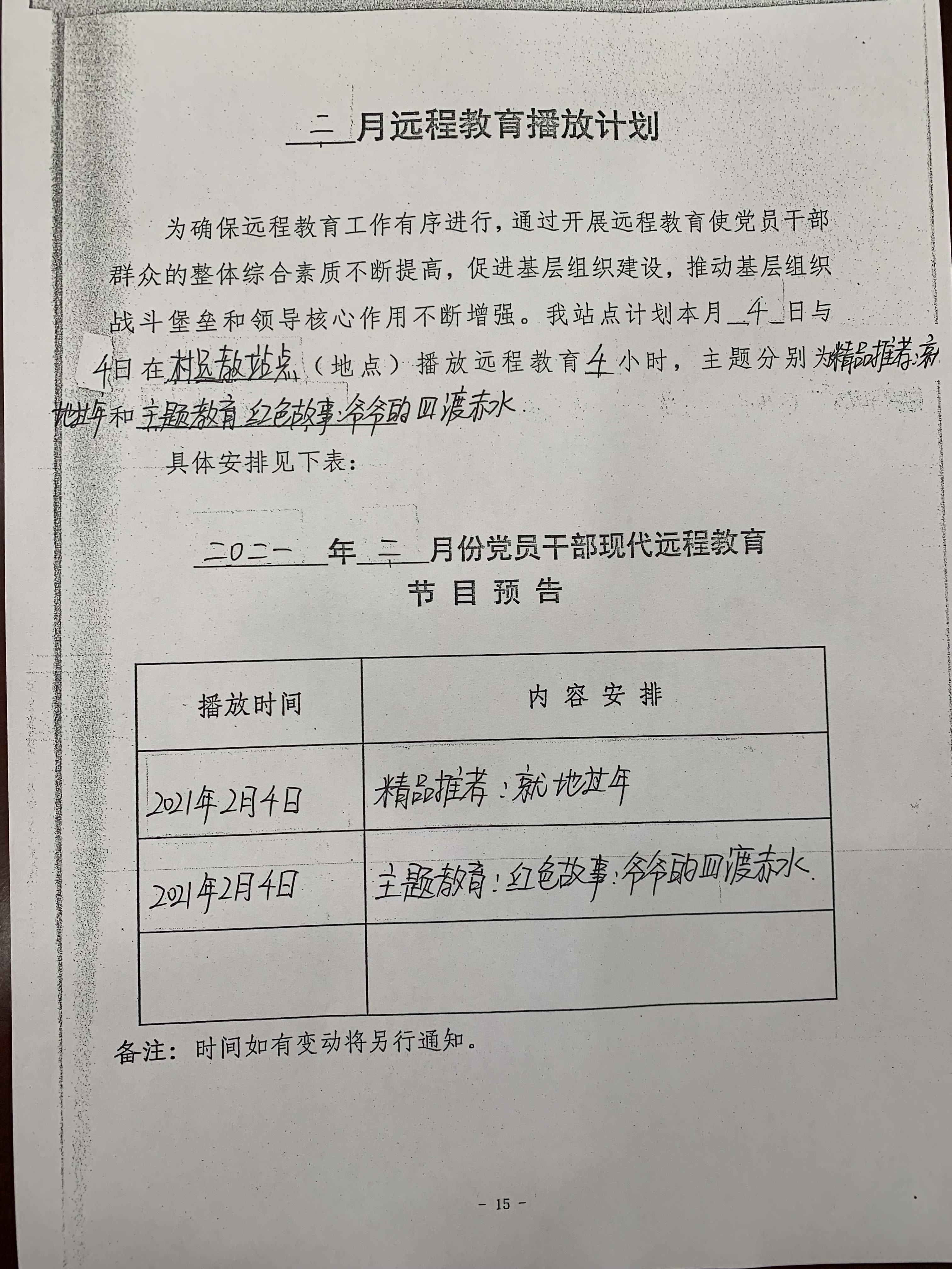 虎山村2月份遠程教育播放計劃