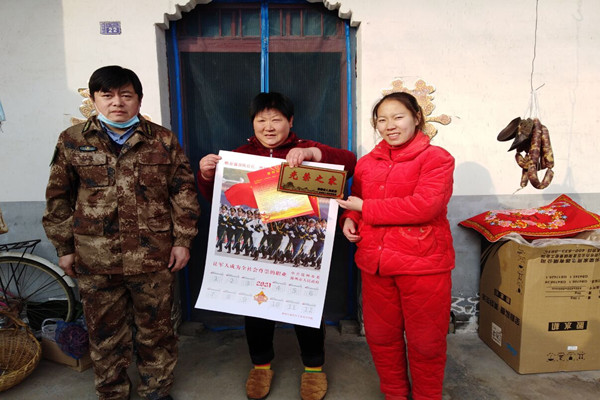2021年1月3日,金埠村民兵營長走訪了全村所有退伍軍人以及新兵家庭,走訪過程中給軍烈屬送去了慰問品和年畫,給新兵家庭裝訂了光榮之家牌,并給所有退伍軍人拜個早年,祝他們身體健康、闔家幸福。