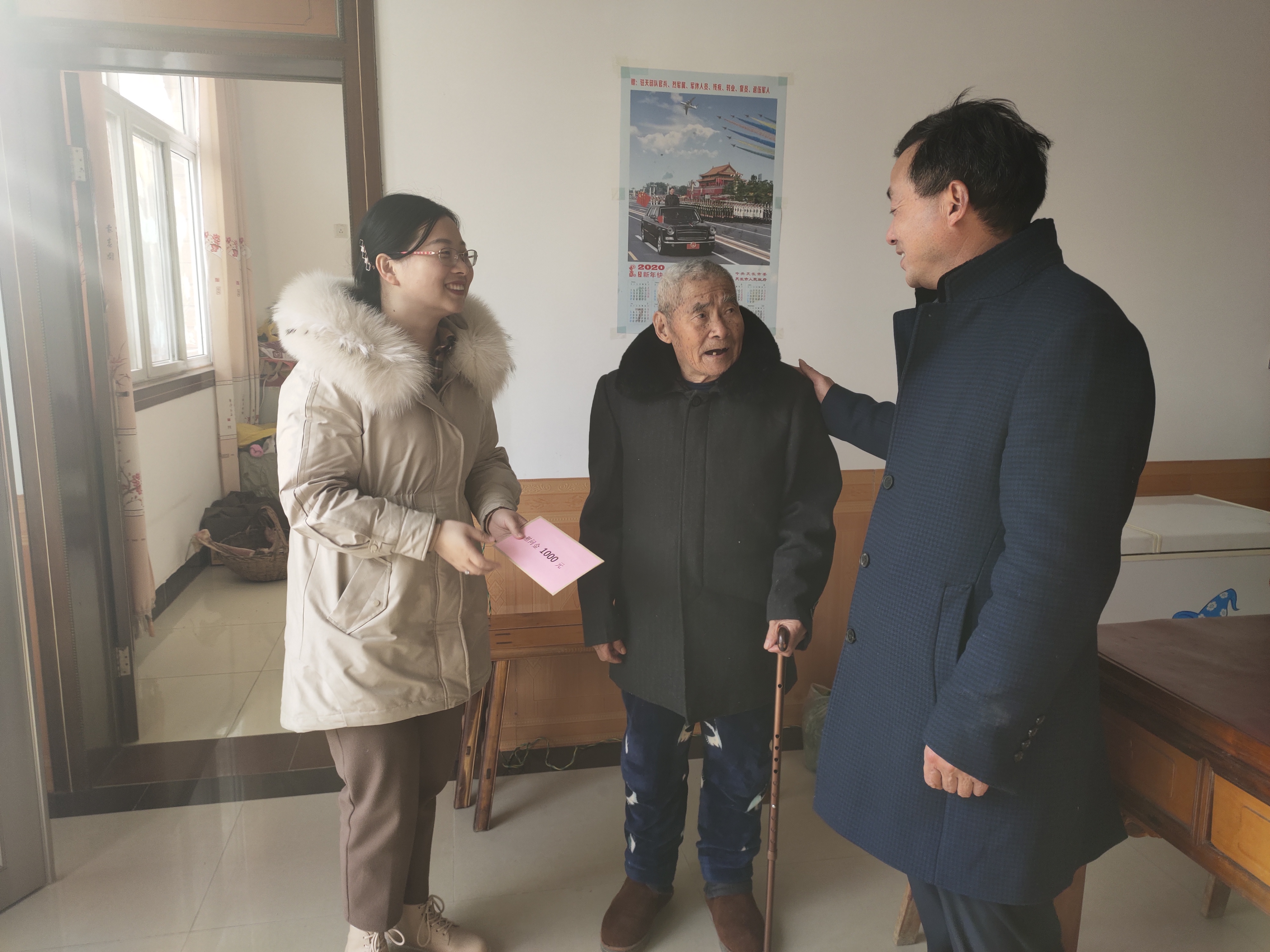 2021年2月10日,銅城鎮副鎮長岑曉慧同志來沿湖村看望抗美援朝老戰士。