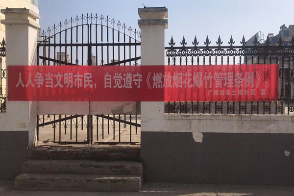 近日,土城社區組織工作人員到轄區各小區、居民組,在醒目的地方張貼《致全市人民的一封信遵守〈條例〉規定做守法公民》,社區還利用小喇叭、短信、微信等形式進行宣傳,倡議大家自覺遵守煙花爆竹禁放規定。