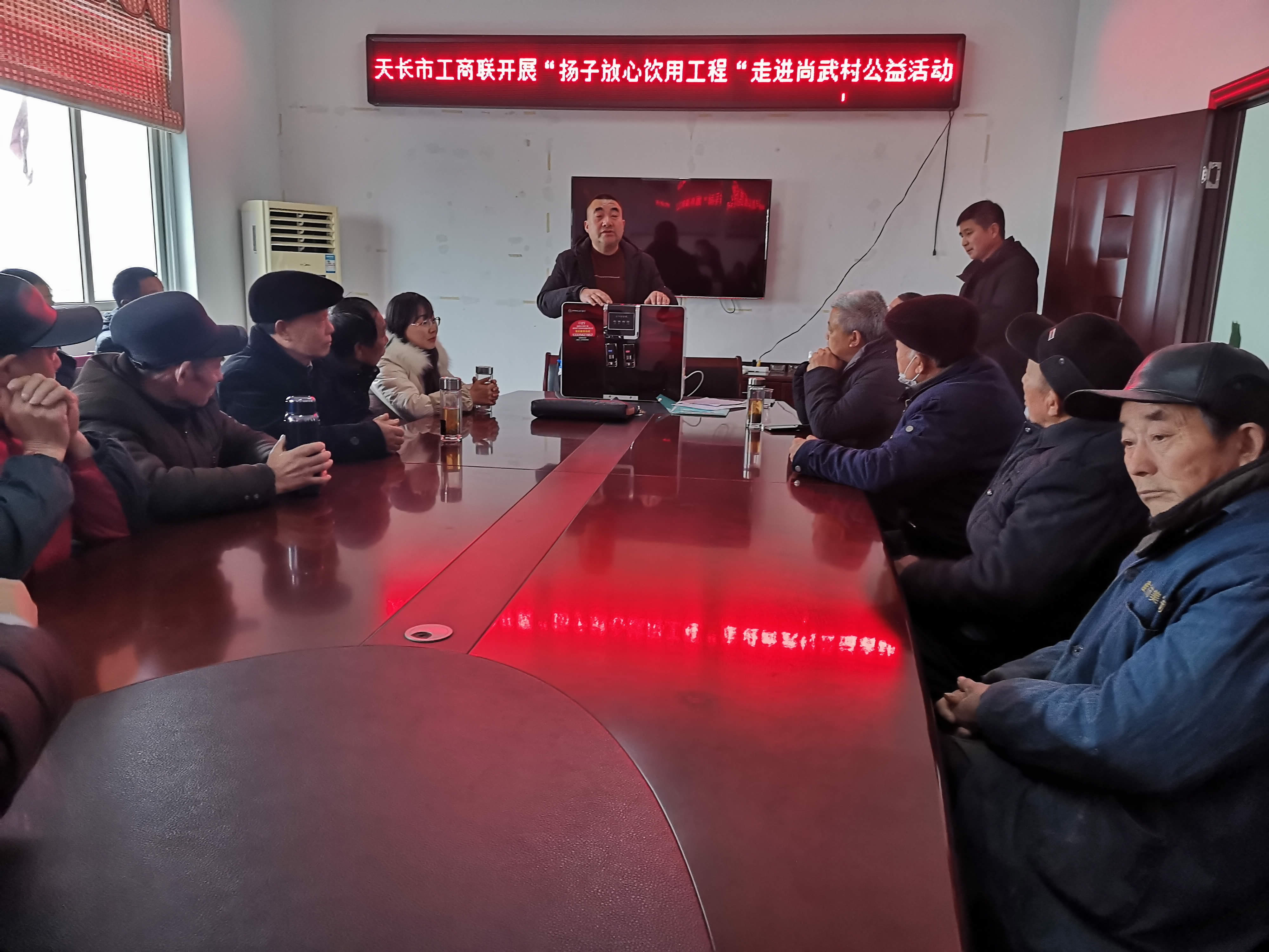 會(huì)上,揚(yáng)子公司負(fù)責(zé)人向前來參加會(huì)議的尚武村村民組長介紹了此次活動(dòng)開展的文件依據(jù),宣傳了安全健康飲水知識(shí),以及此次活動(dòng)給廣大村民帶來的優(yōu)惠政策。活動(dòng)方還向尚武村委會(huì)捐贈(zèng)了一臺(tái)揚(yáng)子凈水器,用于解決飲用水安全問題。