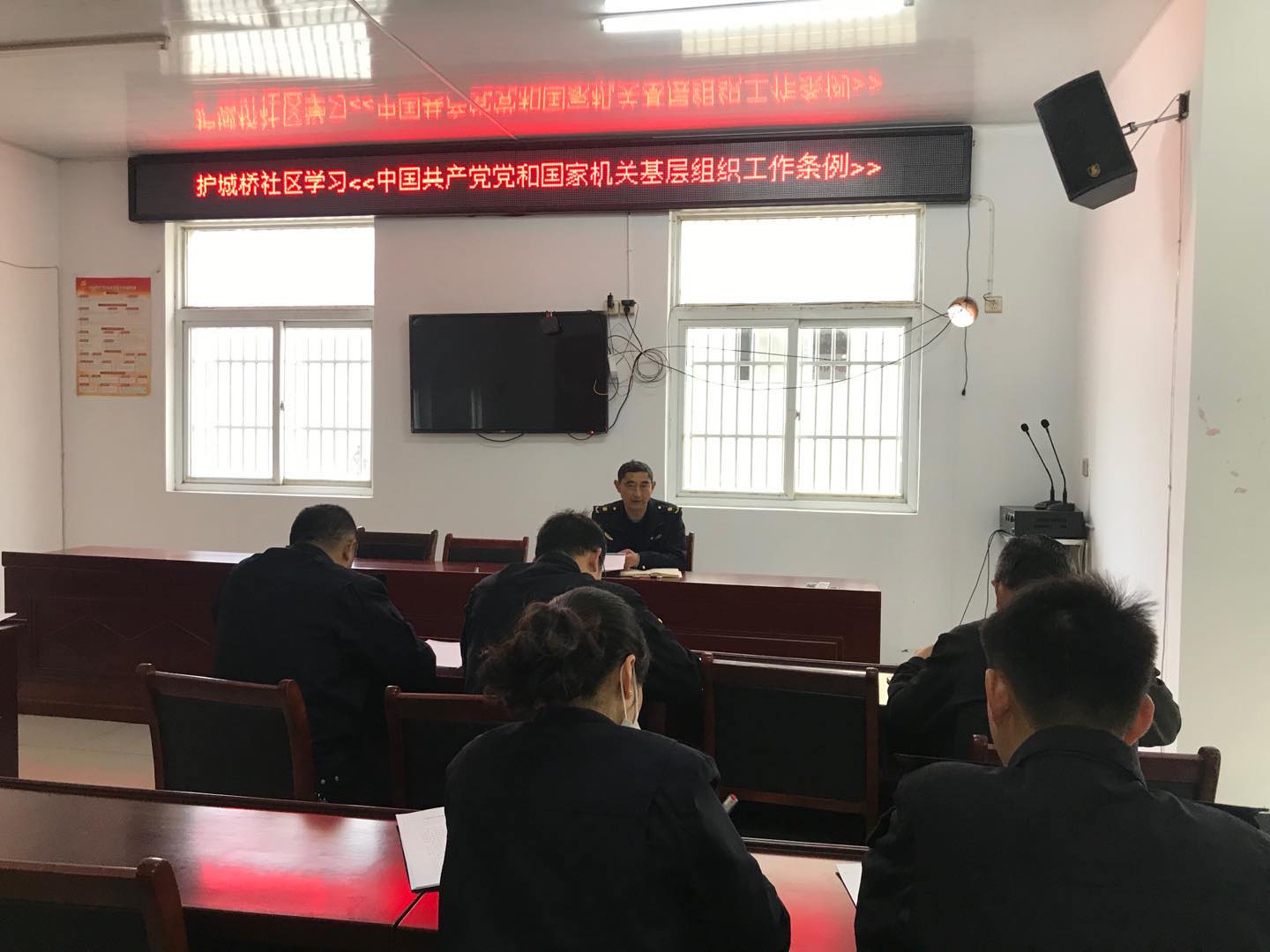會上,護城橋社區黨總支書記祁廣清帶領大家認真學習了《條例》全文。