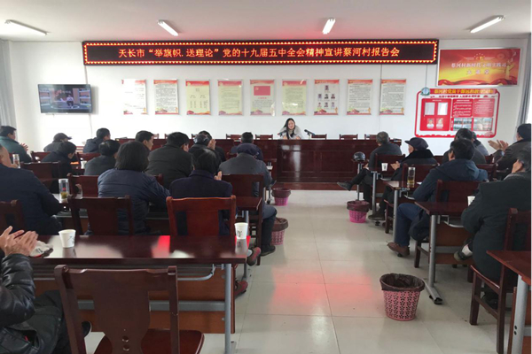 學習新階段,領悟新理念,踐行新格局,奮進新藍圖。天長市委黨史方志室以高度的政治自覺和強烈的責任意識,將黨的十九屆五中全會精神與學“四史”相結合,積極開展黨的十九屆五中全會精神宣講活動,融入紅色文化、嵌入紅色基因,用黨的成功經驗啟發人、用黨的偉大成就激勵人、用黨的優良傳統教育人。