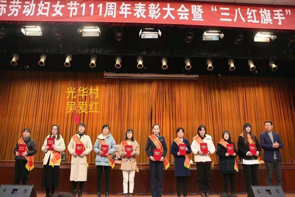 2021年3月8日,天長市舉行紀念國際勞動婦女節111周年表彰大會暨“三八紅旗手”宣講團成立儀式,向全市廣大婦女同胞致以崇高敬意和美好祝福。楊村鎮光華村吳愛紅同志榮獲天長市巾幗建功先進個人,為此,我們光華村全體人員值得驕傲。希望吳愛紅同志繼續樹立服務大局,奮力改革創新,當好婦女群眾的“引路人”、“帶頭人”、“貼心人”、“守護人”、“娘家人”,推動光華村婦聯工作邁上新臺階。