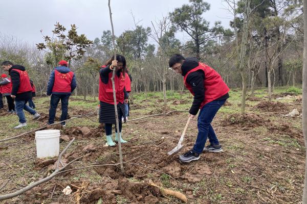 天氣晴好,大家早早來到活動現(xiàn)場,做好準備工作。活動開始后,大家或松土挖坑、栽插扶苗,或回填夯實,分工協(xié)作,配合默契,充分發(fā)揚了團結(jié)、互助、友愛的精神,認認真真地種好每棵樹,用實際行動為家鄉(xiāng)增添一抹“綠色”。通過半天的辛苦勞動,共種植樹苗80余棵,義務(wù)植樹現(xiàn)場呈現(xiàn)一派生機盎然的景象。
