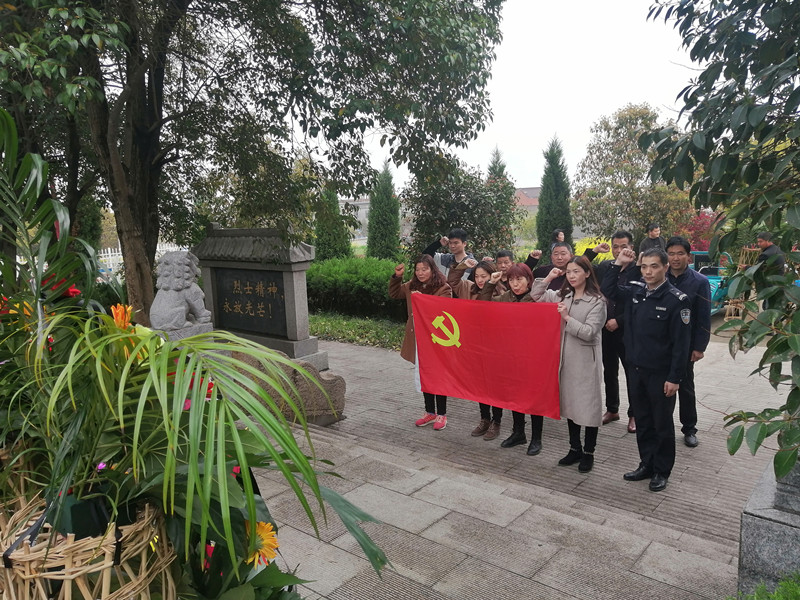 黨員懷著崇敬的心情向革命烈士紀念碑敬獻了花籃,鞠躬致敬,表達對革命烈士的深切緬懷和無限敬仰。面對鮮紅的黨旗,大家舉起右拳莊嚴宣誓,重溫了入黨誓詞。