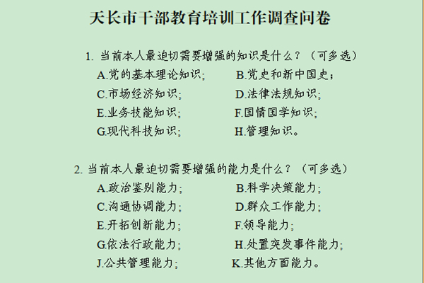去年底,市委組織部深入摸排全市干部學習培訓情況,建立干部個人學習培訓檔案,為精準調學奠定了堅實基礎。市委組織部精心設計干部教育培訓需求調查問卷,面向全市黨政機關開展培訓需求調查,向各單位主要負責同志征求培訓建議,共計開展調查問卷4次,征求意見建議40余條,科學制定了《天長市2021年度主體班次和專題班次設置計劃》。市委黨校依據培訓目標和任務,強化管理、精心組織、嚴格要求,按照教學計劃認真組織和實施。市委組織部干教股同志多次來到班上抽查學員到課情況,有力地保證了學習培訓的順利開展。