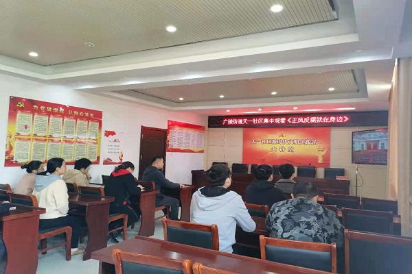 為進(jìn)一步加強(qiáng)黨風(fēng)廉政建設(shè)宣傳教育,夯實(shí)拒腐防變的思想道德防線,促使社區(qū)工作人員受警醒、明底線、知敬畏,大力營(yíng)造廉潔、務(wù)實(shí)、高效的工作氛圍。4月15日,天一社區(qū)組織全體工作人員集中觀看了電視專題片《正風(fēng)反腐就在身邊》第一集《政治監(jiān)督》。