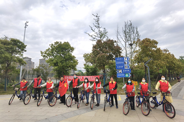 4月20日下午,活動在天長市健康公園正式拉開帷幕。今年地球日的主題是“修復我們的地球”,黨員們統一著志愿者服裝騎著共享單車低碳出行,騎行隊伍也迅速引來不少居民的注意。沿路中有的黨員向居民們發放環保宣傳冊,耐心解答群眾環保知識咨詢以及在日常生活中如何綠色消費的問題;有的黨員免費發放環保用袋,叮囑重復使用可減少白色污染;還有的黨員撿起路邊的垃圾,給花卉樹木澆水等。大家都在用自己的行動為改善生態環境盡一點綿薄之力。