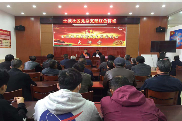 4月23日,土城社區黨總支開展“紅色講壇”,講好專題黨課活動。社區邀請了“中國好人”李宏祥同志,到社區講百年黨史。李宏祥同志從三個方面作了報告:一、學習黨史的深刻意義;二、中國共產黨天長地方史;三、建黨100周年中的13種精神。