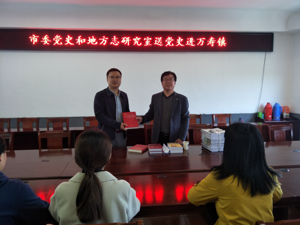 4月28日上午9點,市委黨史和地方志研究室到萬壽鎮開展黨史學習教育宣講活動暨黨史教育系列書籍贈書儀式。
