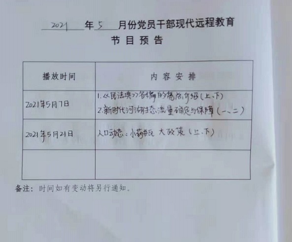 余莊村2021年5月遠程教育播放計劃如上圖所示