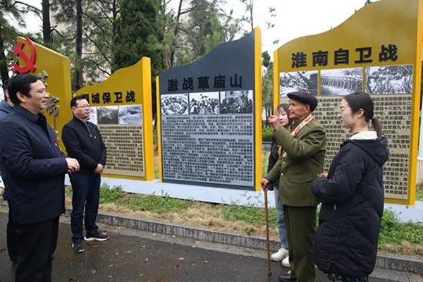 年過(guò)九旬的新四軍老戰(zhàn)士李元忠(右二)紅色宣講。史九永 攝