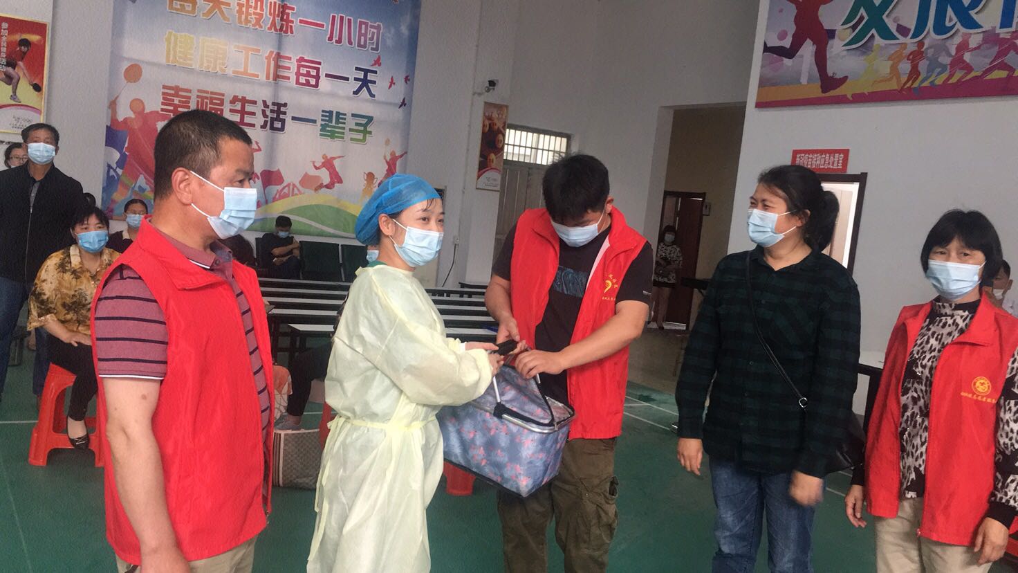 5月25日,振興社區志愿者齊承霏等到銅北疫苗接種點慰問醫護工作者及衛計工作人員。