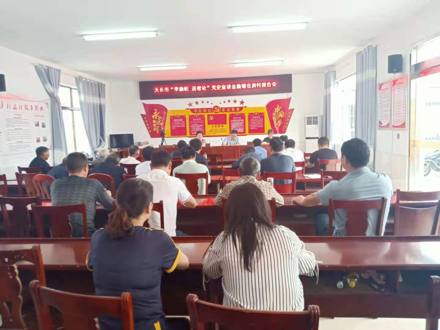 2021年5月27日下午,天長市“舉旗幟•送理論”宣講團走進金集鎮倉房村開展黨史學習教育宣講活動。天長市黨校宛謹裕老師應邀作主題宣講,會議由倉房村總支書記尹書林主持,倉房村黨員干部30多人聆聽報告。