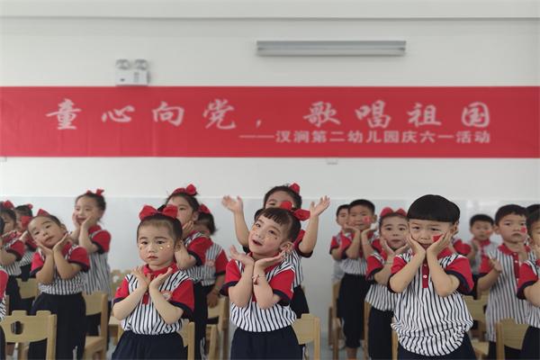 為慶祝建黨一百周年華誕,增強愛國熱情,汊澗第二幼兒園開展了“童心永向黨,共筑中國夢”為主題的系列活動。通過讓孩子認識國旗國徽、參加升旗儀式、誦讀國學經典、歌唱紅色歌曲、開展主題繪畫等形式,弘揚愛國精神,增強民族自信心、自豪感。