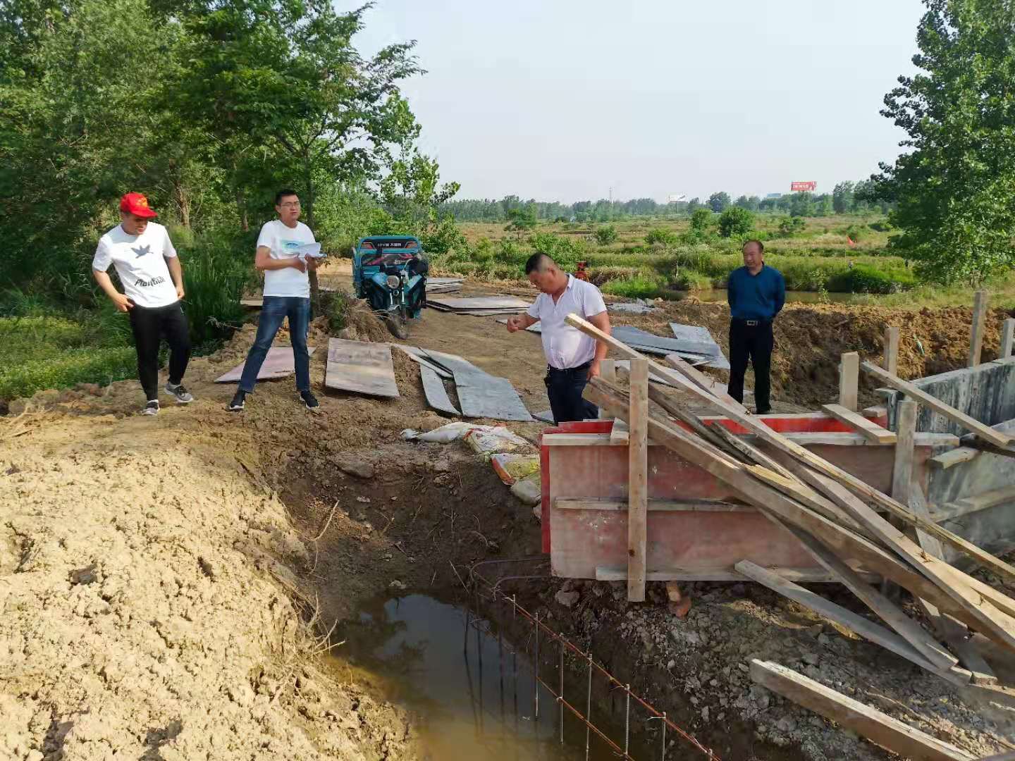 6月1日,天氣晴朗,為了保證竹園村檀樹水庫堤壩維修工程在保質保量的同時,順利、有序的進行,陳所長和工程監理一同到施工現場進行勘察。