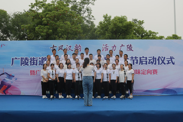 “唐風漢韻,活力廣陵,歷史的文脈我們傳承······”啟動儀式上,機關、居村工作人員合唱了該街道原創歌曲——《廣陵之歌》,富有激情的旋律,內涵深刻的歌詞,唱出了身為廣陵人的自信與豪邁;由社區文化志愿者表演的健身秧歌《抬龍王》,則以歡快熱烈的音樂節奏表現出百姓祈愿風調雨順,慶賀豐收的喜慶場景;由社區居民們自排自演的響扇健身舞表演——《出水蓮》,輕盈大氣,極富中國風,健美舞姿演繹了一首古箏名曲,映襯出一朵朵“出水芙蓉”······。