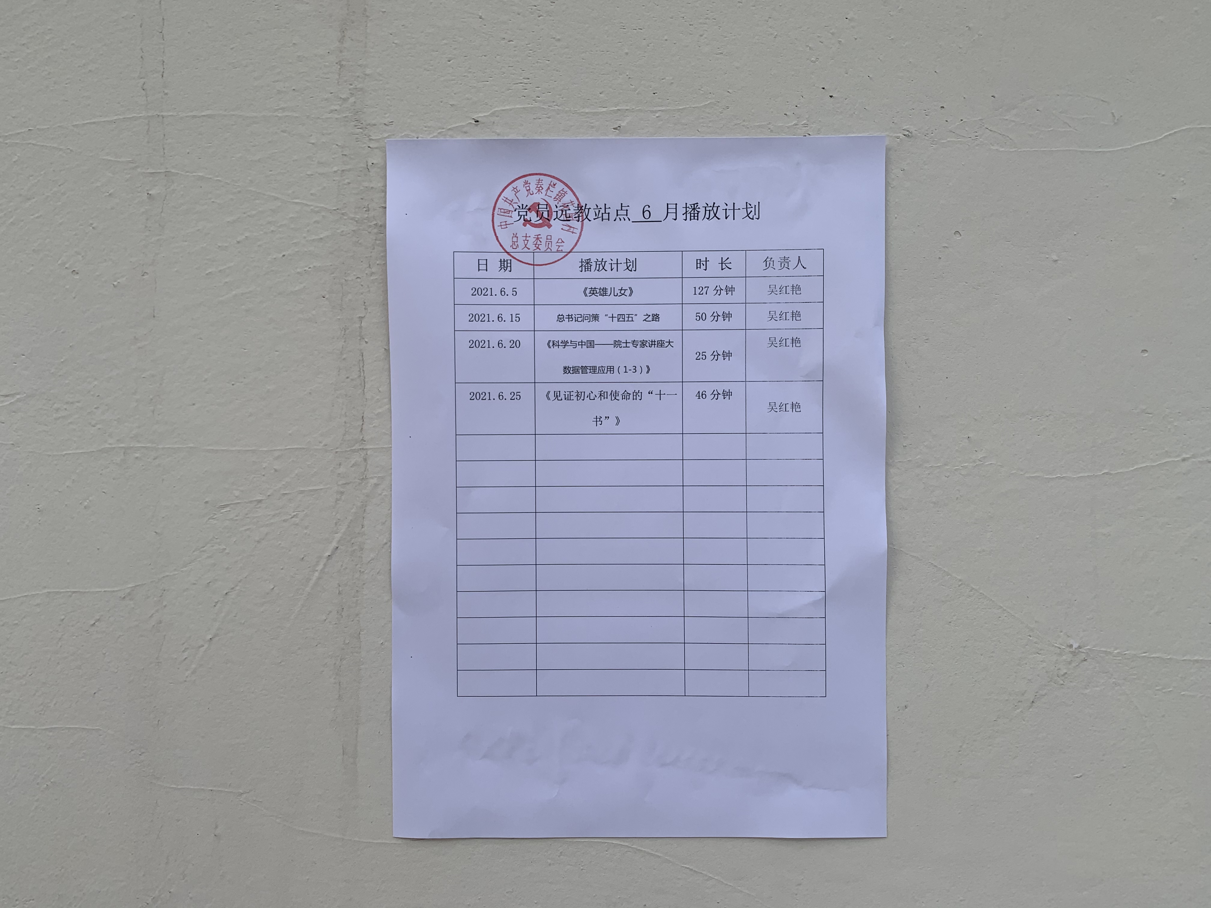2021年6月5日,花園村制定6月份黨員遠教播放計劃,并進行公示。