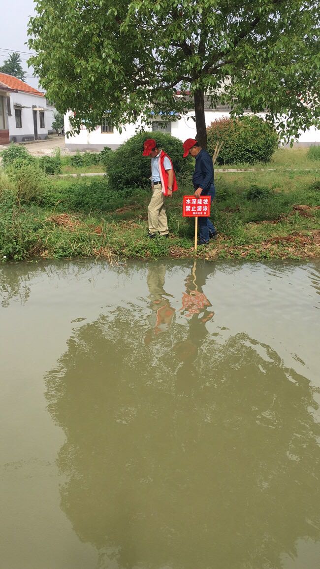2021年6月8日,社區工作人員及志愿者對社區內河道安插防溺水安全警示牌。