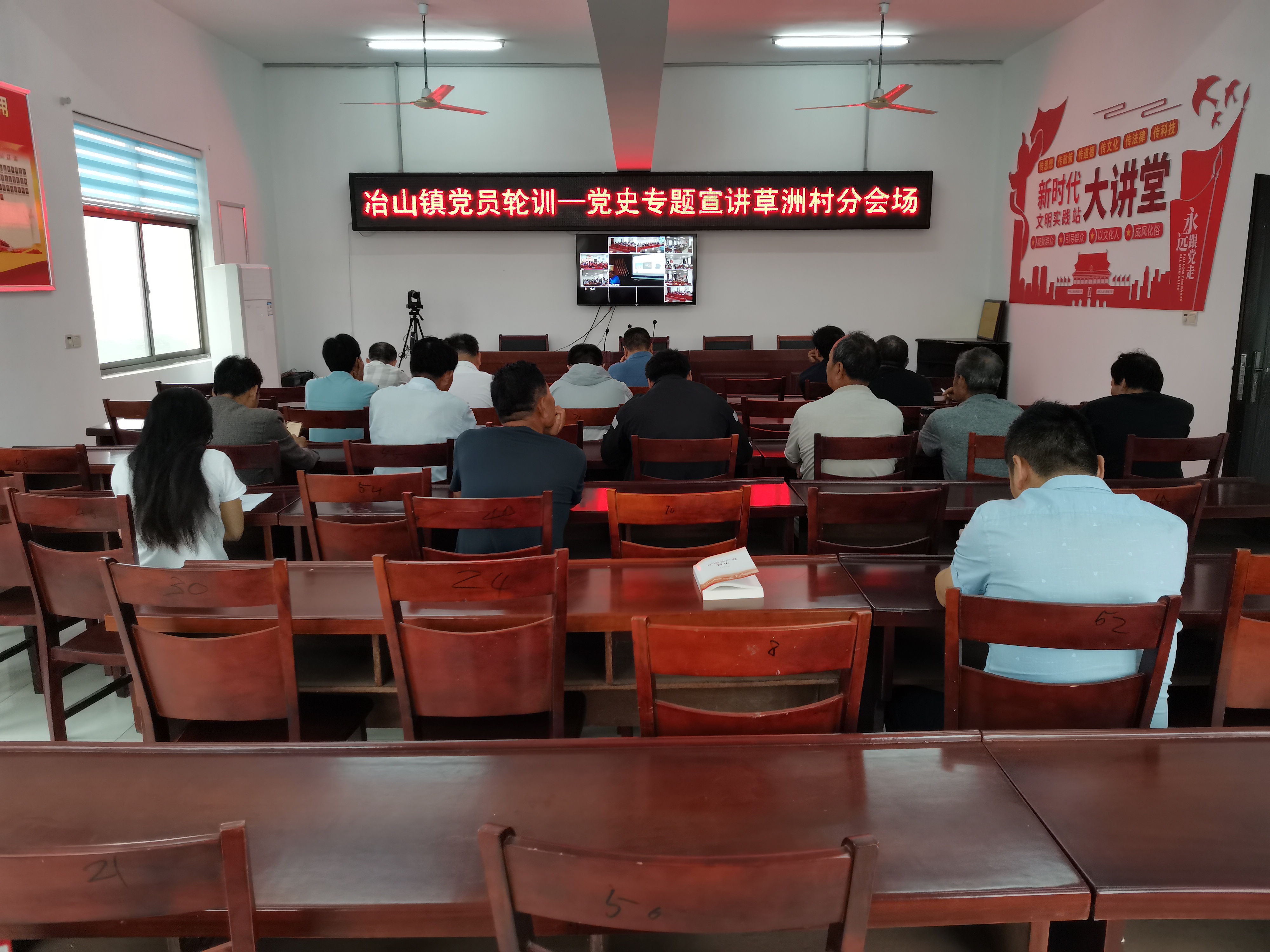 6月18日上午,冶山鎮黨委邀請市委黨校劉海泉教授為冶山鎮黨員做了一次黨史專題宣講,根據鎮組織部和宣傳部的安排,草洲村組織全體村干和部分黨員在草洲村分會場參加學習。劉海泉教授形象生動的講解了我們黨的創業史和發展史,各位黨員聽的入心入腦,受益匪淺。